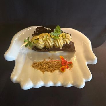 Base de brownie con pistachos mousse de pistacho