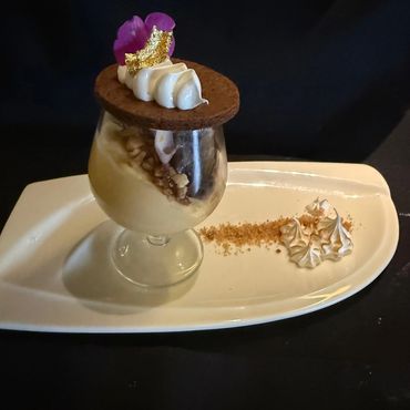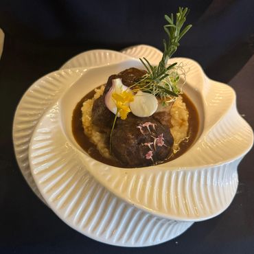 Cremoso risotto elaborado lentamente, infusionado con vino que aporta profundidad y carácter, acompañado de ossobuco tierno y meloso, cocinado a baja temperatura hasta alcanzar una textura suave y envolvente.